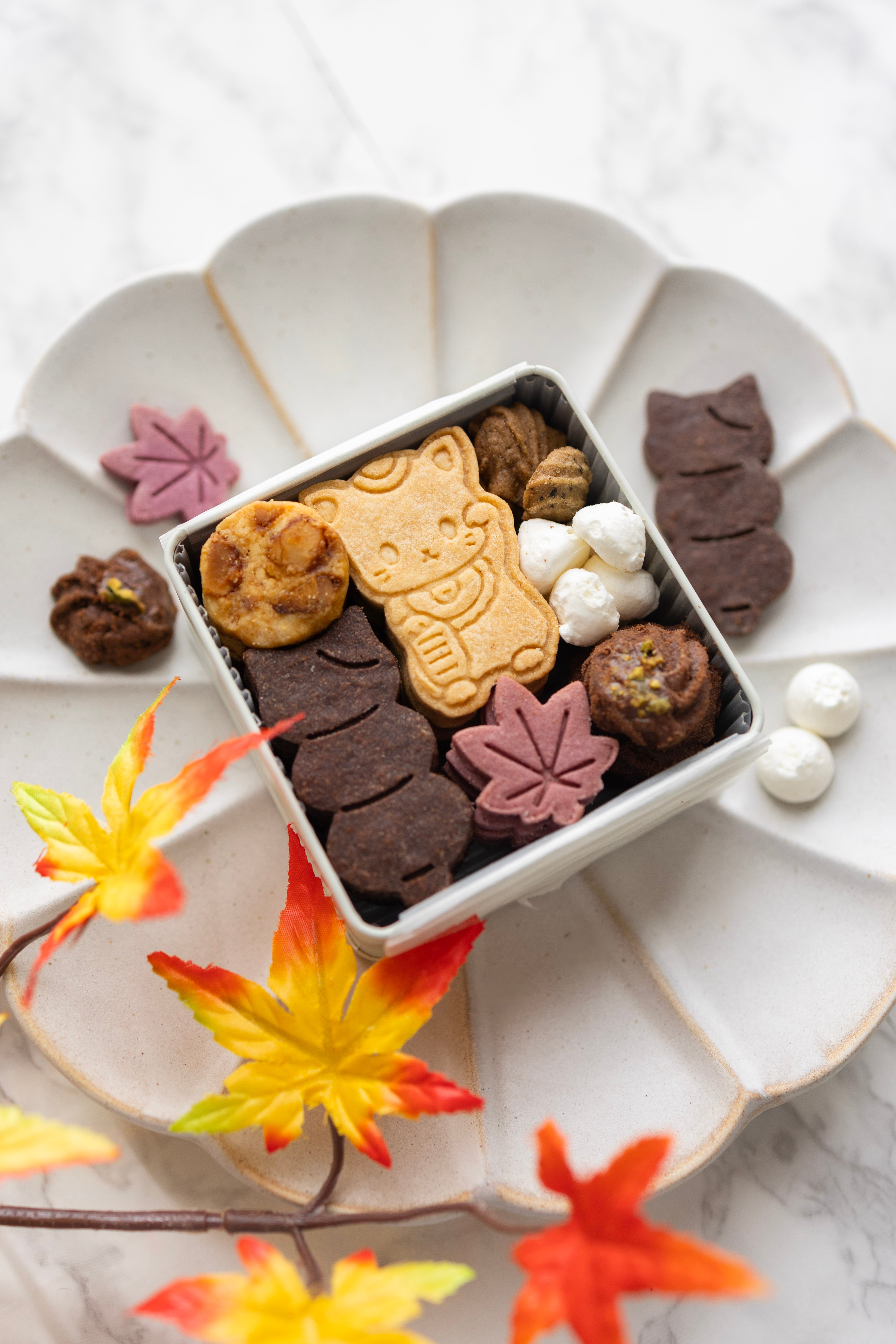 招き猫の形をかたどったクッキーや、猫耳の付いたお団子モチーフのクッキーなど、見た目も楽しいラインナップです。